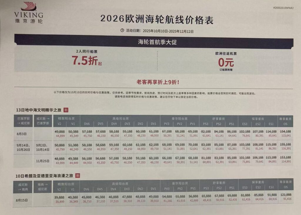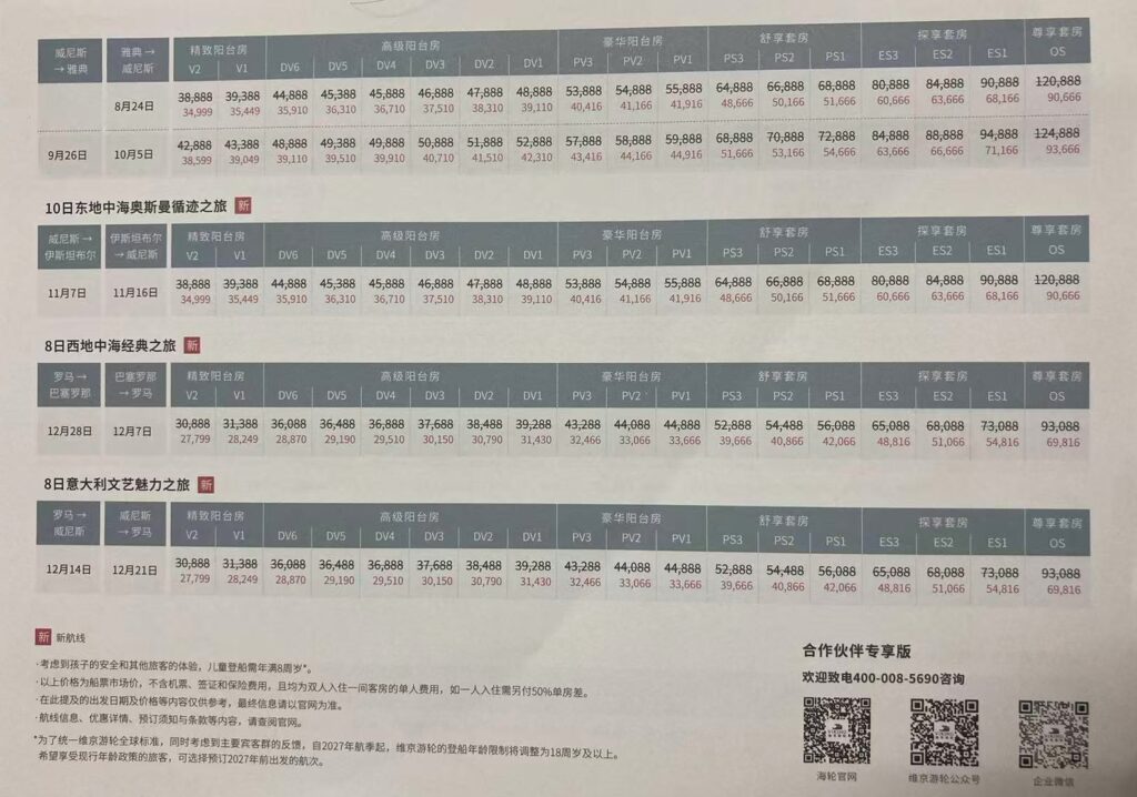 Travel 海上欧洲航线 2025年10月22日 / No Comments 登上海轮,我被其自成一派的船上氛围和岸上体验深深折服——不再有五光十色的娱乐设施或鼎沸的人声,一切的船上氛围和体验,与极富启发的岸上目的地探索一脉相承。船上和岸上不再是割裂的两部分,而是升华和贯穿旅程的存在。 这次是含海量100%的旅程,海轮的所有客房均自带独立阳台,推窗即享大幅海景。登临七层甲板,每一天都能看到不同的光景,让人好奇现实时间的边界。无论如何,总算是从人间奔赴到了山海。