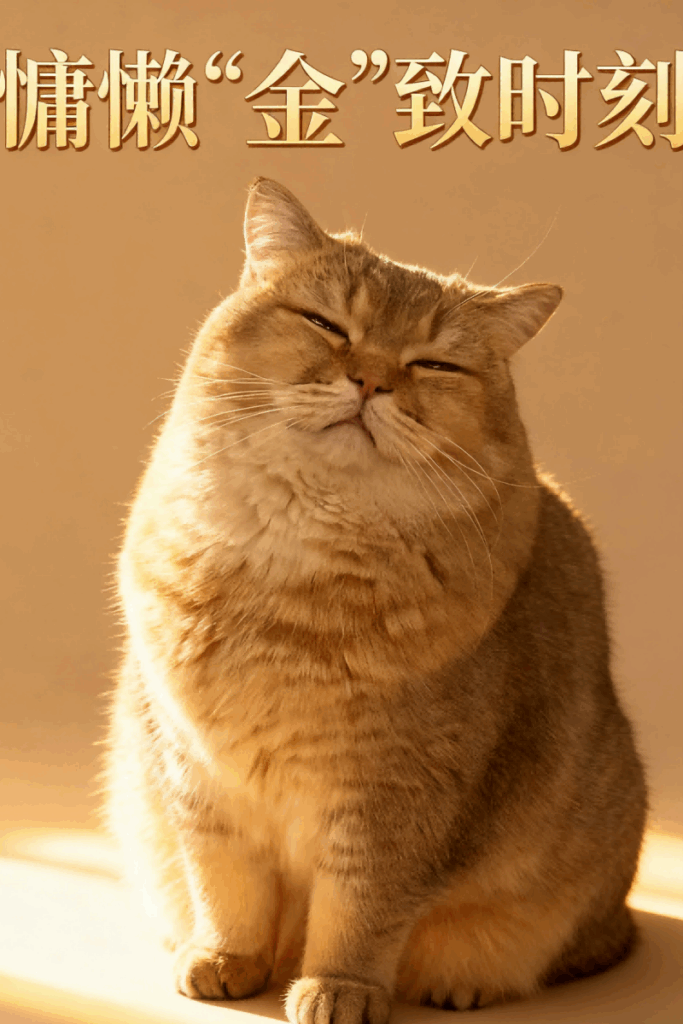 英短金渐层猫咪,慵懒的金胖子,圆乎乎的脸蛋、温顺性格,像个小太阳,日常爱找温暖角落打盹,饲养时要注意控制饮食以防过度肥胖,同时定期梳理短毛保持整洁。很容易发胖,所以要注意饮食控制。